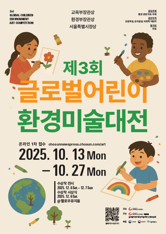 조선뉴스프레스에서 ‘글로벌 어린이 환경 미술대전’을 진행합니다.
